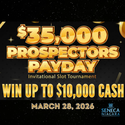 Don't miss Seneca Niagara's $35K Prospectors Payday Invitational Slot Tournament March 28, 2026.